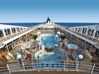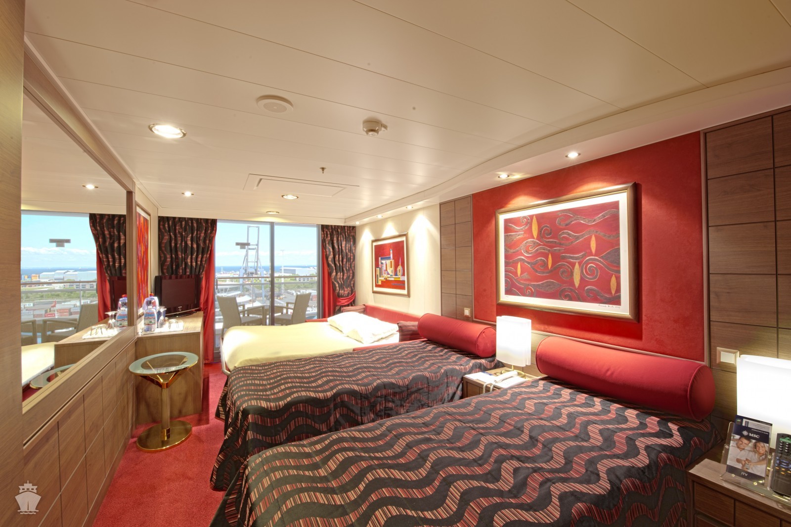 Kajuta s balkónem: 17-23 m², kajuta s manželskou postelí (na požádání 2 oddělené postele) a rozkládací pohovka. Klimatizace, koupelna se sprchou nebo vanou a WC, toaletní stolek, prostorná skříň, interaktivní TV, telefon, minibar, sejf, vysoušeč vlasů. Balkony se stolkem a židlemi.