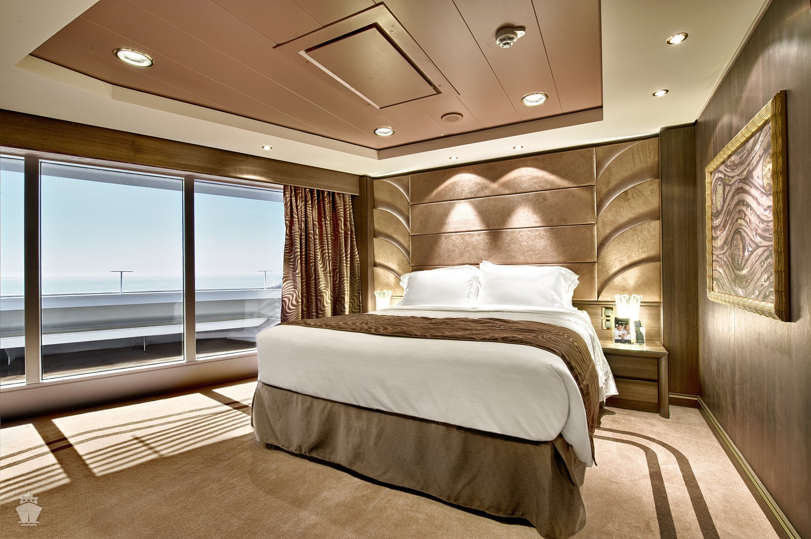 Kajuta s balkónem: 17 - 42 m², kajuta s manželskou postelí (na požádání 2 oddělené postele) a rozkládací pohovka. Klimatizace, koupelna se sprchou nebo vanou a WC, toaletní stolek, prostorná skříň, interaktivní TV, telefon, sejf, vysoušeč vlasů. Balkony se stolkem a židlemi. Některé kajuty mají omezený výhled.