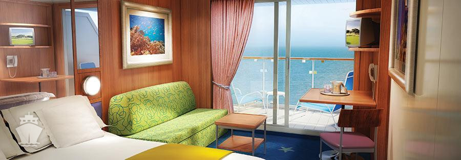koupelna se sprchou a WC, 2 lůžka, v některých kajutách možnost přistýlek, toaletní stolek, úložné prostory, interaktivní TV, sejf, telefon, vysoušeč vlasů.