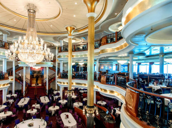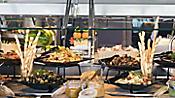V ceně plavby je nadstandardní plná penze v hlavní restauraci - Main Dining Room, velkolepé bufety ve Windjammer Marketplace, gourmet deli v Park Café, pizza v Sorento a některé nápoje (voda, limonáda, ledový čaj z automatů v bufetových restauracích)