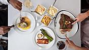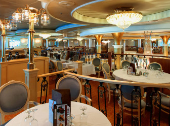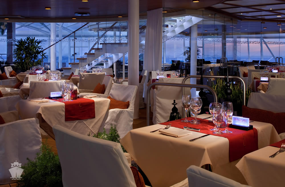 CHOPS GRILLE - klasický americký steakhouse s ručně krájenými steaky v typické restauraci Royal Caribbean s prvotřídním hovězím masem k němuž se přidává  mainský humr, grilované branzino a další šťavnatá jídla v kombinaci s návykovými přílohami a neodolatelnými dezerty.