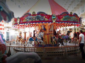 • Klasický ručně dělaný kolotoč na Boardwalk Arcade