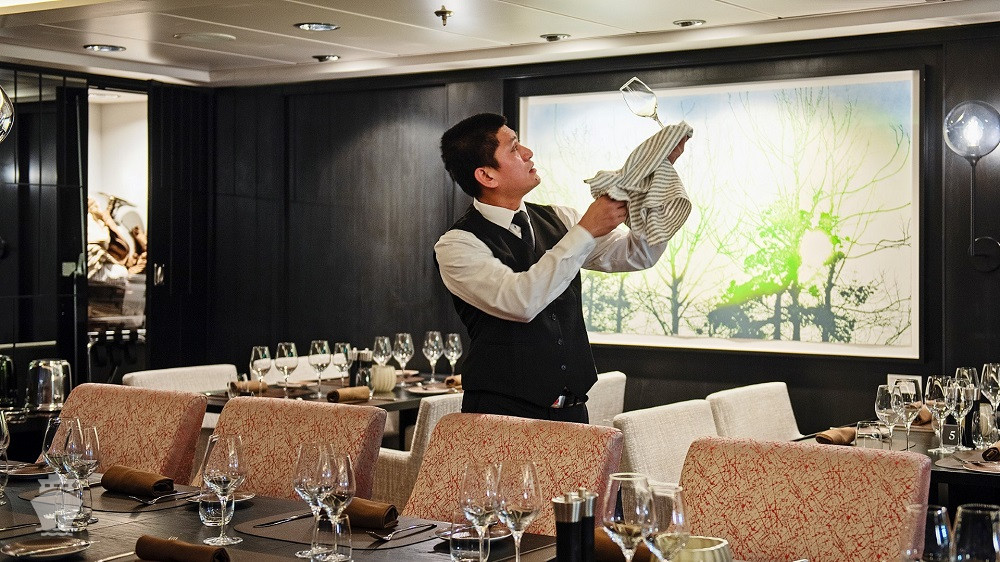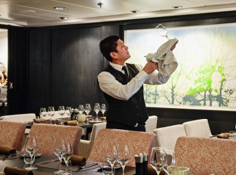 Hlavná reštaurácia Aune v tradičnom štýle, kde sa podávajú hlavné jedlá; celodenne otvorená Fredheim na bežné medzinárodné stolovanie; a Lindstrøm, exkluzívna top reštaurácia zahrnutá v cene plavby pre hostí Suite a pre ostatných na rezerváciu a za príplatok. Každá z nich ponúka kuchyňu s jedinečným charakterom, s využitím bio a lokálnych surovín.