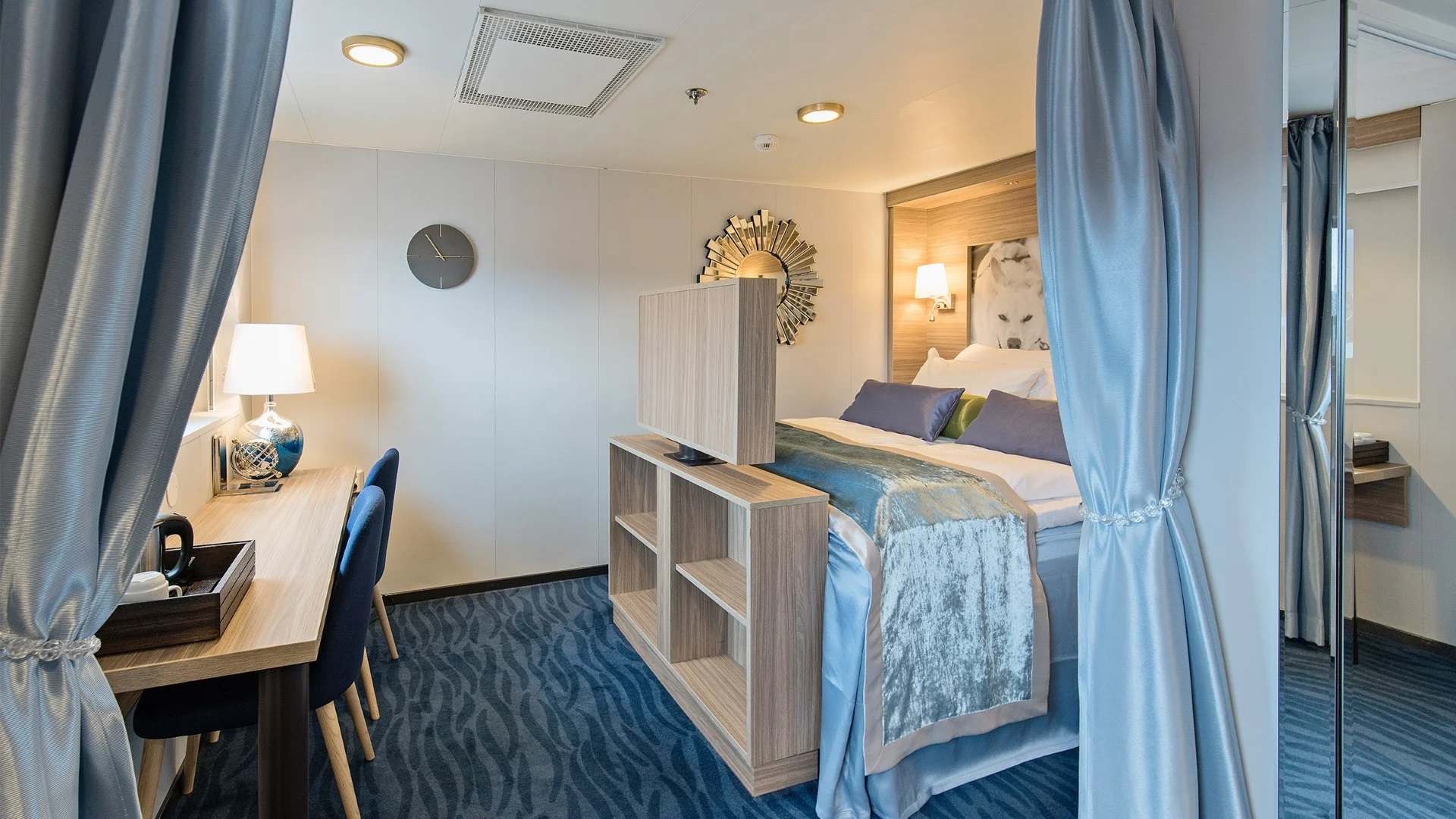 Kajuty se sprchou a WC jsou pohodlně zařízené a skýtají svým hostům dostatečné zázemí. K vybavení kajuty patří 2 lůžka, v některých kajutách jsou přistýlky ve formě sklopných lůžek.