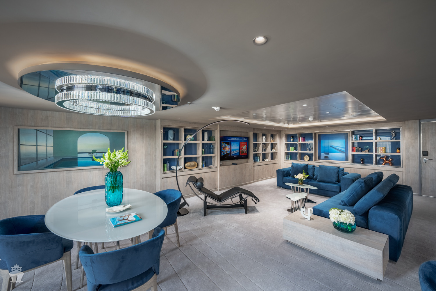 Kategorie kajut Yach Clubu: Owner´s suite s vířivkou na balkoně YC4, Royal suite s vířivkou YC3, Deluxe suite YC1, Duplex suite s vířivkou YJD, Duplex suite YCD, Deluxe suite YC1, vnitřní suite YIN.