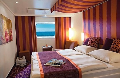 Ve všech kajutách se nachází koupelna se sprchou, manželská postel s možnosti oddělit lůžka, dostatek úložných prostor, trezor, vysoušeč vlasů, telefon, televizor, regulovatelná klimatizace.