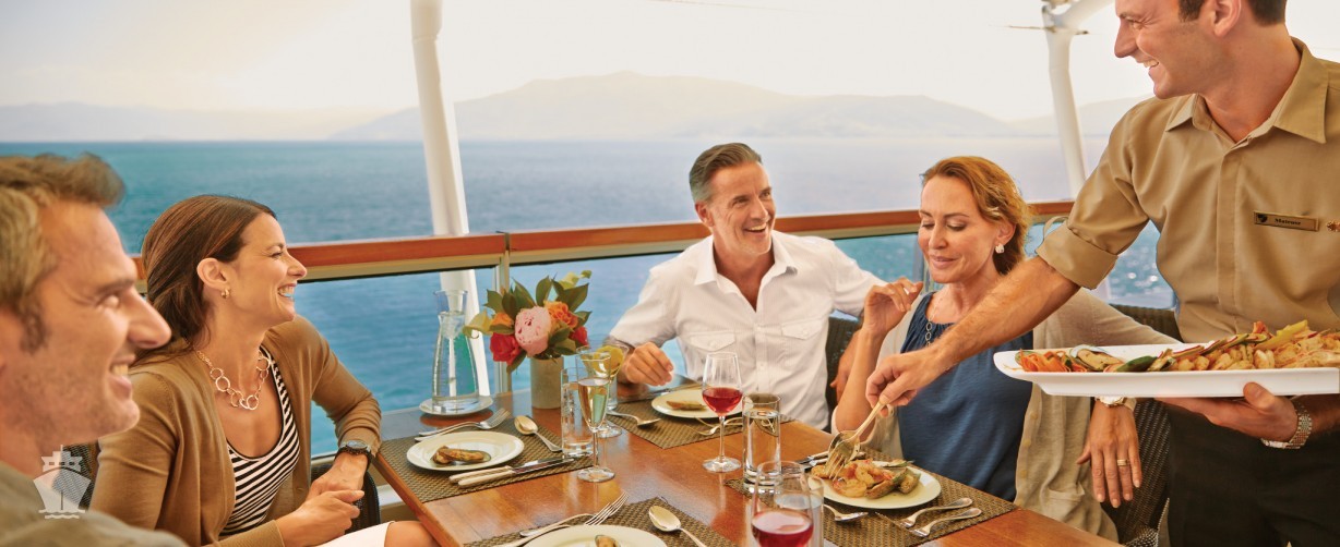 Každá loď nabízí výběr stravovacích zařízení, ze kterých si může host vybrat podle své momentální nálady. Téměř všechny mají otevřeno sezení. Všechna jídla jsou bez příplatku a k obědu a večeři se bezplatně nalévají kvalitní vína.