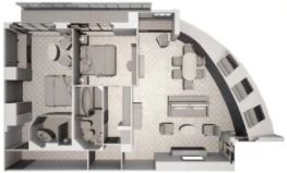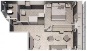 | R1 - Royal Suite 1 69 m² (včetně balkona), oddělená obývací časť a ložnice | 2 153 223 Kč 717 741 Kč za osobu |