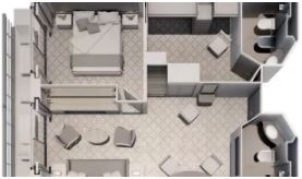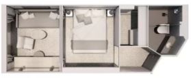 | DV - Deluxe Veranda Suite 27m² (včetně balkona). Centrálna pozícia. Ložnice s obývací částí. | 860 289 Kč 860 289 Kč za osobu | ||