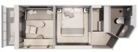 | DV - Deluxe Veranda Suite 27m² (včetně balkona). Centrálna pozícia. Ložnice s obývací částí. | 860 289 Kč 430 144 Kč za osobu | ||