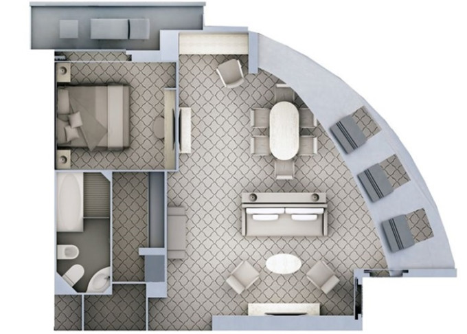 ![]() | Medallion Suite - max. 2 hostia 40,6 m² / z toho 7,6 m² veranda Audio systém Bang&Olufsen, kávovar Illy Espresso ![]() |