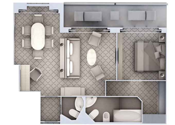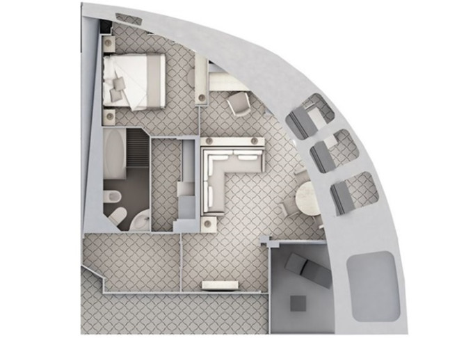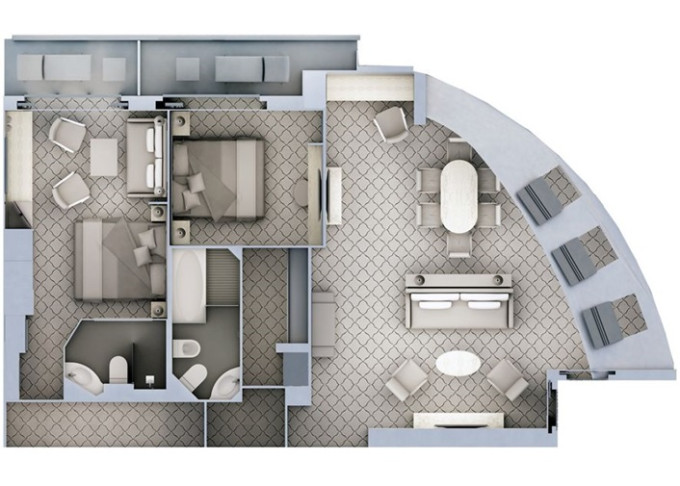 | R1 - Royal Suite 1 69 m² (včetně balkona), oddělená obývací časť a ložnice | 2 153 223 Kč 717 741 Kč za osobu |