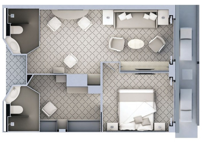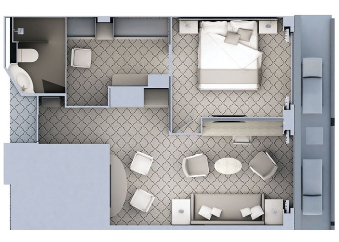 | ME - Medallion Suite 40,6 m² (včetně balkona), oddělená obývací časť a ložnice | 1 125 378 Kč 562 689 Kč za osobu | ||