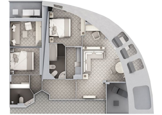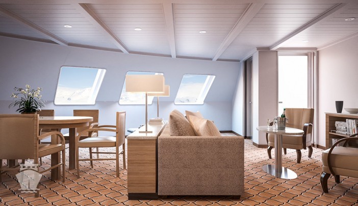 Celkový počet apartmánů: 2 Ve všech apartmánech: služby majordoma; luxusní povlečení Pratesi a péřové přikrývky; výběr polštářů; koupelna z mramoru; výběr kosmetických přípravků Bulgari; vysoušeč vlasů, župany a pantofle Etro; sejf; Tv s filmy na objednávku mezinárodními digitálními zprávami; naplněná minichladnička a bar; spojení WiFi: apartmány Vista a Veranda 1 hodina denně, ostatní kategorie bez limitu; teaková veranda (kromě apartmánů Vista).