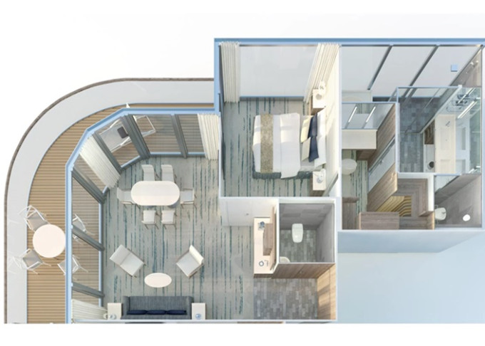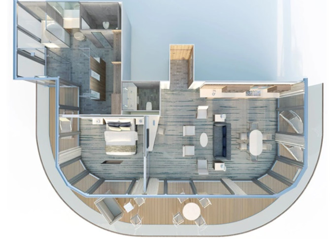 | O1 - Owner's Suite 1 160 m² / veranda 60 m². Ložnice, oddělená obývací část a jídelna, koupelna s vířivkou a výhledem na moře. | 2 213 007 Kč 1 106 503 Kč za osobu |