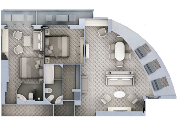 | G2 - Grand Suite 2 122 m² (včetně 2 balkonov). Grand Suite G1 spojená s Veranda Suite. | 2 582 674 Kč 2 582 674 Kč za osobu |