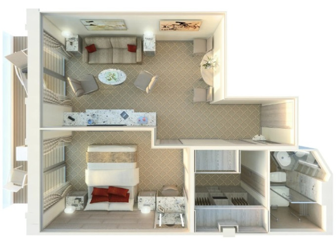 | ME - Medallion Suite 41-62 m² (včetně balkona). Ložnice a oddělená obývací časť. | 1 393 745 Kč 1 393 745 Kč za osobu | ||