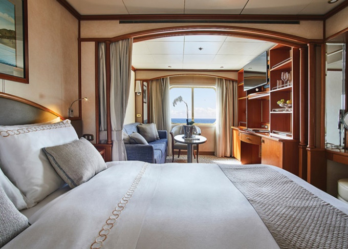 | VI - Vista Suite s oknem 22-30 m². Panoramatické neotevíratelné okno. Ložnice s oddělitelnou obývací částí. | 889 199 Kč 444 600 Kč za osobu | ||
