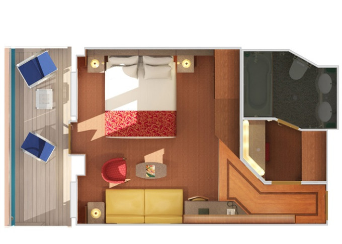 Základní vybavení všech kabin: koupelna se sprchou a WC, TV s plochou obrazovkou, telefon, elektrická zásuvka 110 AC, regulovatelná klimatizace, postele Carnival Comfort, vysoušeč vlasů, bezpečnostní schránka, mini lednička