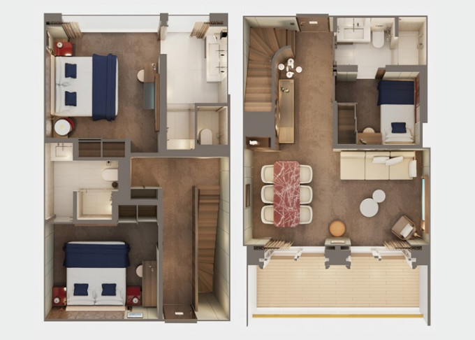 | H8 - Suite The Heaven Duplex Loftové apartmá. 84 - 84 m² / balkón 10-11 m².15/16. paluba. Max 5 osob. Výhody The Haven. | 357 070 Kč 178 535 Kč za osobu |
