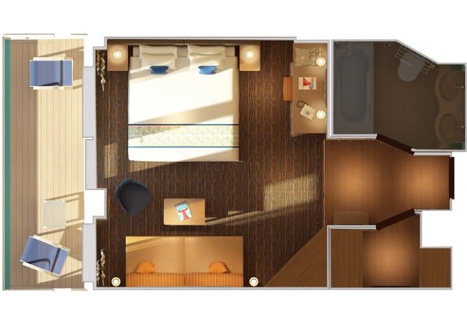 | OS - Ocean Suite 100 - 108 m² (kajuta a balkón). 2 koupelny, vířivka, šatník. Služby Suite. | 57 419 Kč 28 710 Kč za osobu |