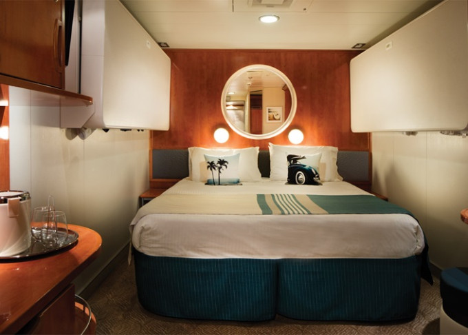 koupelna se sprchou a WC, 2 lůžka, v některých kajutách možnost přistýlek, toaletní stolek, úložné prostory, interaktivní TV, sejf, telefon, vysoušeč vlasů.