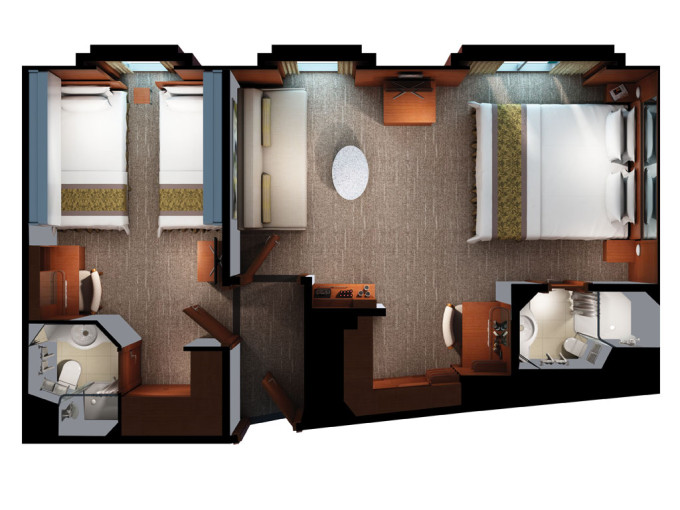 Suite: nejluxusnější a nejprostornější kajuty na lodi; možnost přistýlek