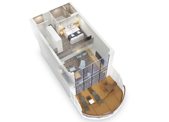 | DL - Kajuta s verandou Deluxe Lounge PREMIUM 17,5 m²/ balkon 11 m². Cenový model Premium. Max 5 osob. | 94 782 Kč 47 391 Kč za osobu |