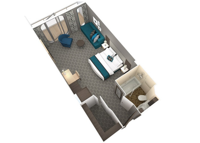 | 2T - Vnitřní kajuta Promenade View / s oknem 18 m². Neotevíratelné okno (výhled na Promenade). 7. paluba. Max 5 osob. | 102 534 Kč 25 634 Kč za osobu | ||