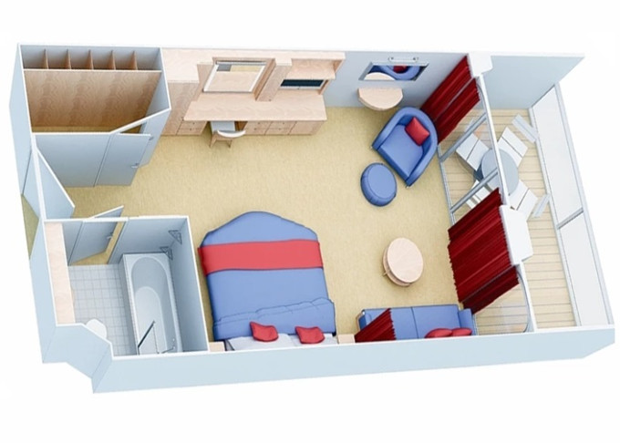 | 1J - Kajuta s balkonem Central Park View 17 m² / balkon 5 m² (výhled na Central Park). 10. až 14. paluba. Max 2-4 osoby. | 149 550 Kč 37 388 Kč za osobu | ||