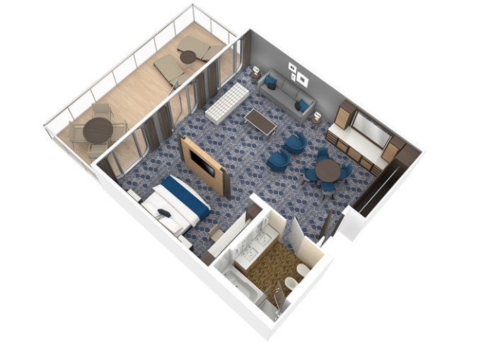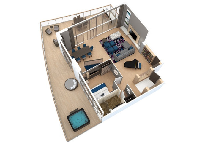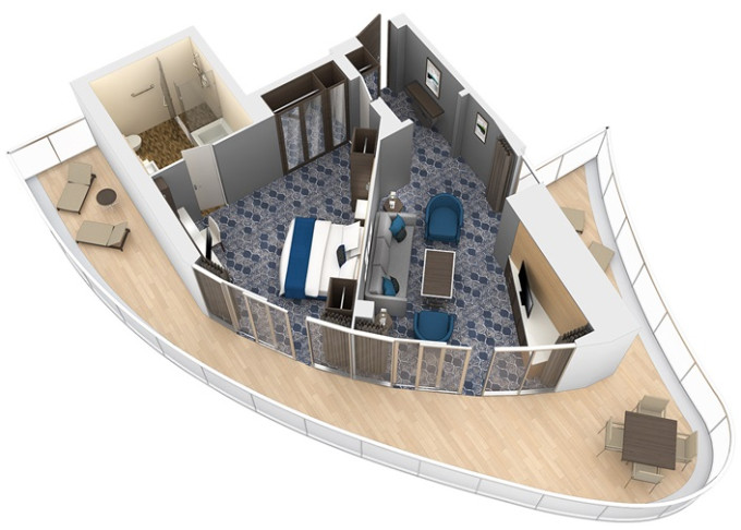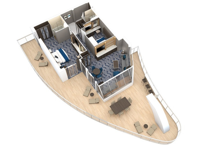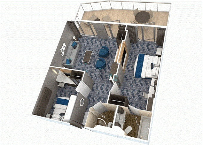 | A2 - AquaTheatre Suite s balkonem / 2 ložnice 62,5 m² / balkon 56 m². Výhody Royal Suite Class. 9/10. paluba. Max 8 osob. | 597 201 Kč 597 201 Kč za osobu | ||