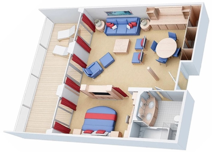 - Prostorné kajuty pro skupiny – pokud cestujete se skupinou přátel, máte na výběr z mnoha možností. Každá kategorie má možnosti, které nabízejí maximální prostor. Od prostorných pokojů s interiérem přes ultra prostorné pokoje s výhledem na oceán až po špičková Villa Suite se čtyřmi ložnicemi.