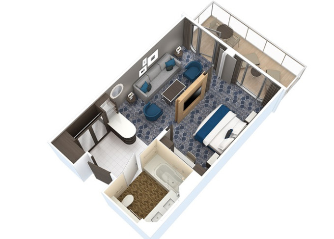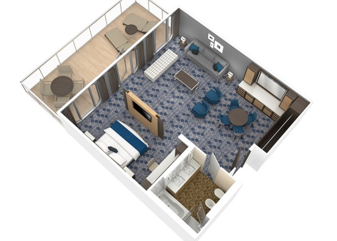 | A3 - Spacious AquaTheater Suite 56 m² / balkón 58 m². Výhody Royal Suite Class. 11/12/14. paluba. Max 4 osoby | 125 992 Kč 125 992 Kč za osobu | ||
