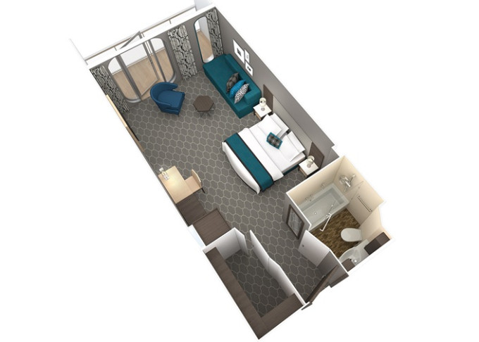 | 2I - Kajuta s balkónem Boardwalk View 17 m² / balkón 5 m² (výhled na Boardwalk). 8/9/10/11/12/14. paluba. Max 4 osoby. | 43 215 Kč 14 405 Kč za osobu | ||