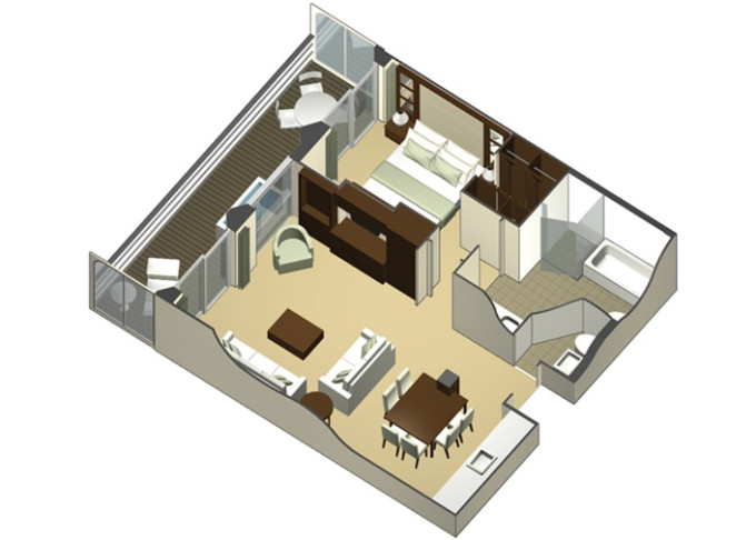 | SS - Sky Suite Sunset 28 m² / balkon 7 m². 6. až 12. paluba na zádi. Max 4 osoby. Výhody Suite. | 82 228 Kč 20 557 Kč za osobu | ||