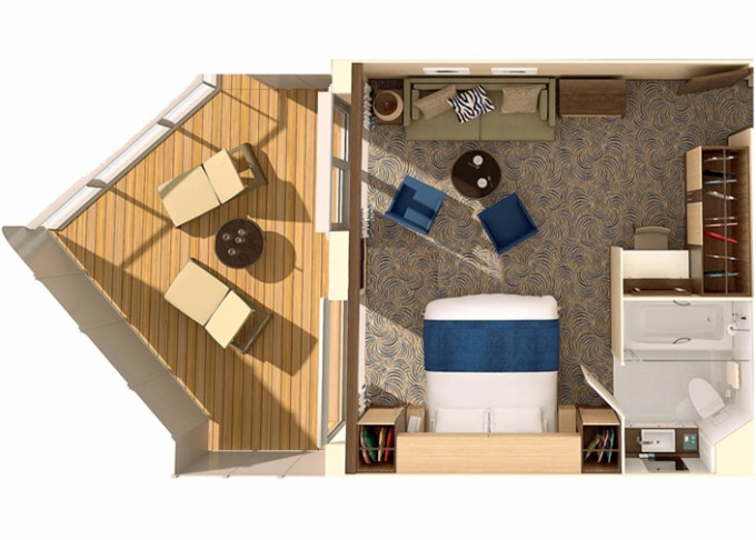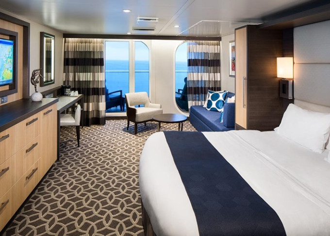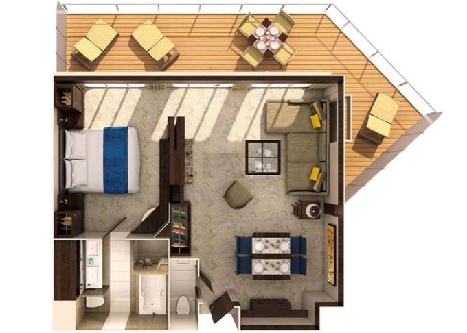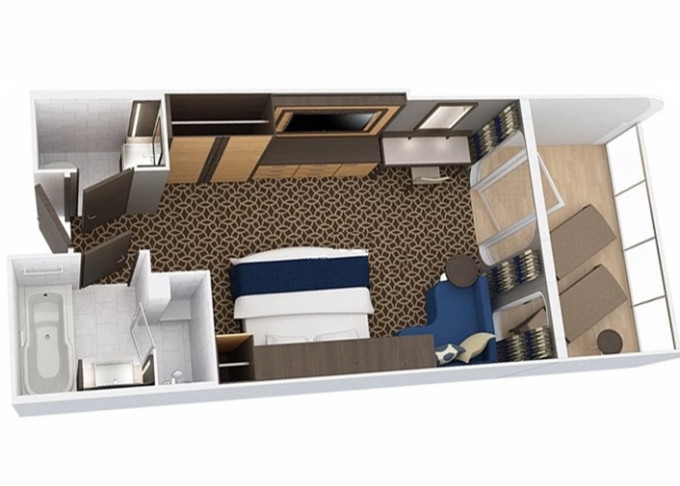 | J4 - Junior Suite s balkonem 25 m² / balkon 7,5 m². Výhody Royal Suite Class. 6. až 13. paluba. Max 4-5 osob. | 138 447 Kč 138 447 Kč za osobu | ||