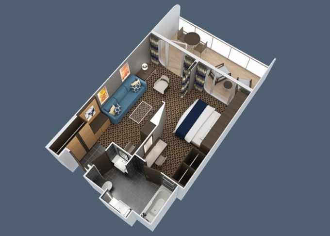 | 3U - Vnitřní kajuta s virtuálním balkonem 15 m². Obrazovka velkosti balkonových dverí s promítaným výhledem. 7. až 12. paluba. Max 2-4 osoby. | 130 044 Kč 32 511 Kč za osobu |