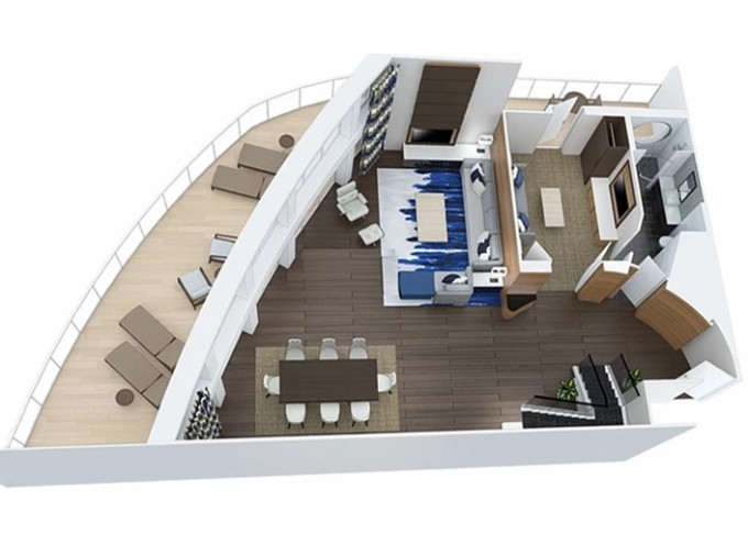 | OS - Owner’s Suite s balkonem 50 m² / balkon 24 m². Výhody Royal Suite Class. 10/12. paluba. Max 4 osoby. | 266 590 Kč 266 590 Kč za osobu | ||