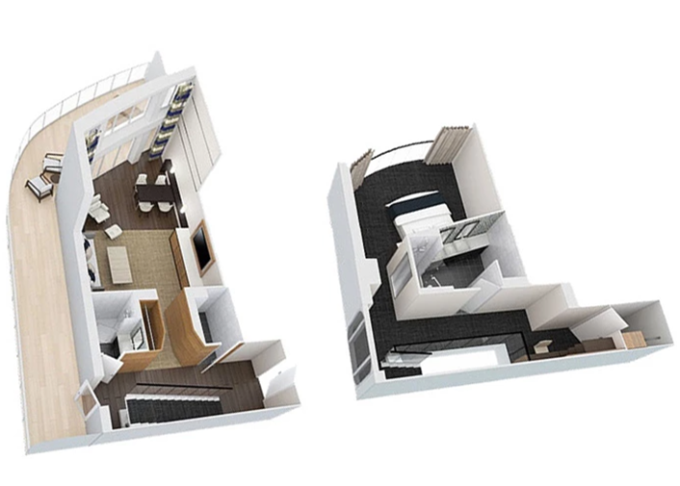 | OL - Owner Loft Suite s balkonem 90 m² / balkon 46 m². 2-podlažní apartmán. Výhody Royal Suite Class. 8. paluba. Max 4 osoby. | 501 168 Kč 250 584 Kč za osobu | ||