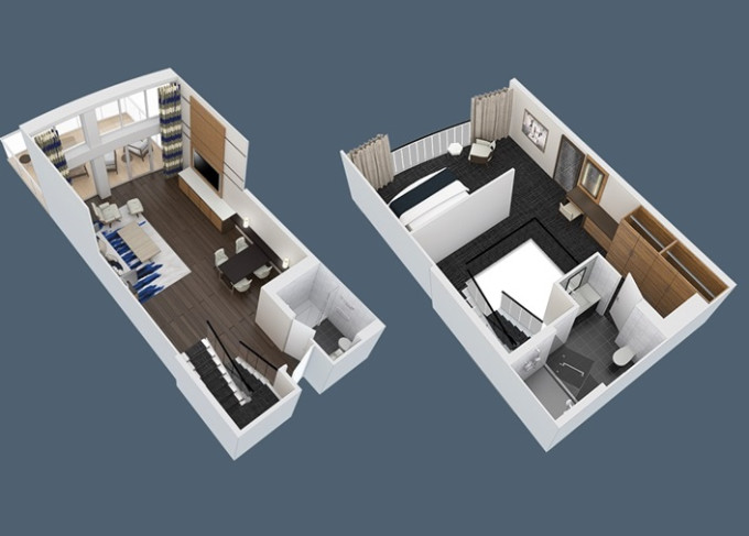 | OL - Owner Loft Suite s balkonem 90 m² / balkon 46 m². 2-podlažní apartmán. Výhody Royal Suite Class. 8. paluba. Max 4 osoby. | 497 092 Kč 497 092 Kč za osobu | ||