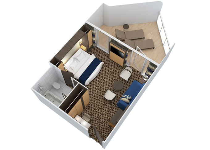 | 2F - Kajuta s balkonem Single Studio 10 m² / balkon 5 m². 6/7. paluba. Max 1 osoba. | 59 120 Kč 14 780 Kč za osobu |