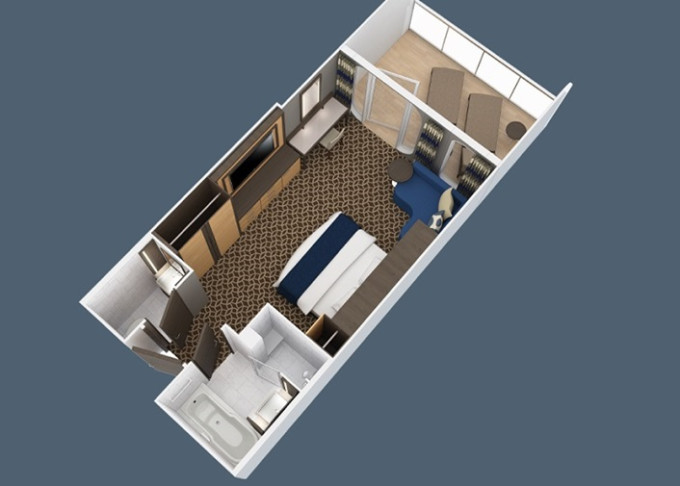 | 3U - Vnitřní kajuta s virtuálním balkonem 15 m². Obrazovka velkosti balkonových dverí s promítaným výhledem. 7. až 12. paluba. Max 2-4 osoby. | 19 256 Kč 9 628 Kč za osobu |