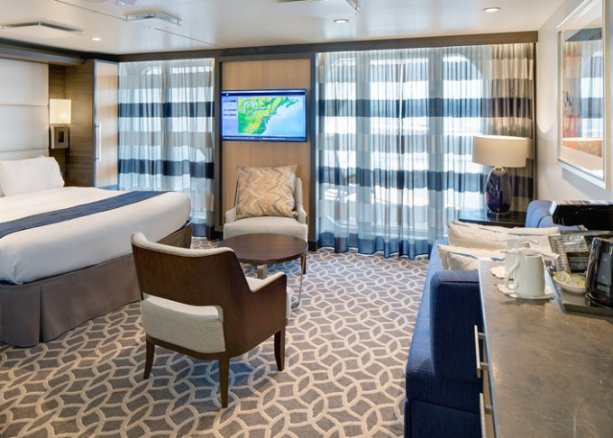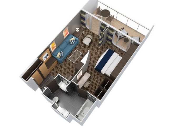 | J3 - Junior Suite s balkonem 25 m² / balkon 7,5 m². Výhody Royal Suite Class. 8/9/10. paluba. Max 4 osoby. | 55 619 Kč 27 809 Kč za osobu | ||