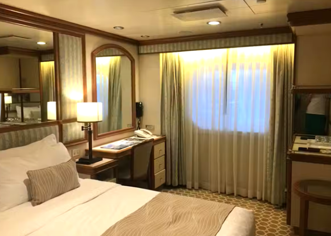 | OW - Vnější kajuta / omezený výhled 16 m². Neotevíratelné okno s omezeným výhledem. Max 2-4 osoby (2 horní lôžka). | 35 462 Kč 17 731 Kč za osobu | ||