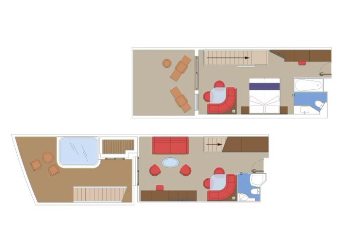 | YCD - Duplex Suite Yacht Club 46 m² + balkón 6 m². Mezonet, 2 koupelny (1 s vanou) Max 4 osoby. 16. paluba. Cenový model MSC Yacht Club. | 173 833 Kč 173 833 Kč za osobu |