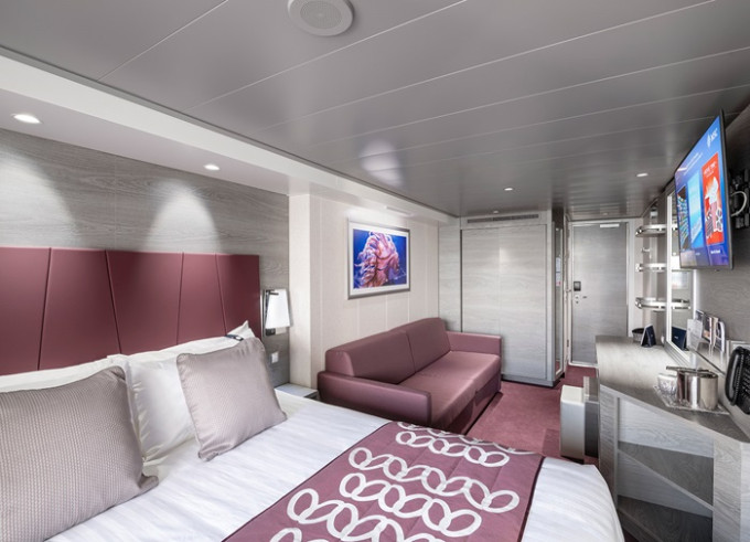 - ubytování v plně vybavené kajutě: vlastní koupelna se sprchou a WC, interaktivní TV, telefon, trezor, vysoušeč vlasů, regulovatelná klimatizace, minibar (za poplatek), Wi-fi (za poplatek)
