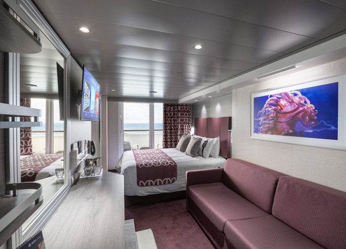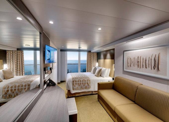 Kajuta s balkónem: 19 - 22 m², kajuta s manželskou postelí (na požádání 2 oddělené postele) a rozkládací pohovka. Klimatizace, koupelna se sprchou nebo vanou a WC, toaletní stolek, prostorná skříň, interaktivní TV, telefon, sejf, vysoušeč vlasů, virtuální asistentka ZOE. Balkony se stolkem a židlemi. Některé kajuty mají omezený výhled.