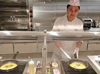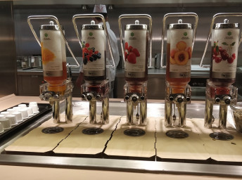 - nápoje (voda, káva, čaj) z automatů v bufetu 20 hodin denně; během snídaně voda, čaj, káva, mléko, kakao, džus