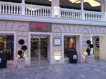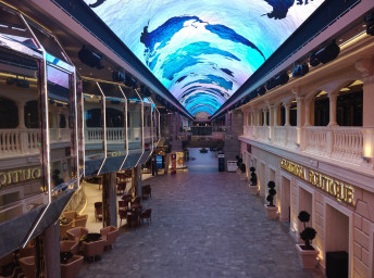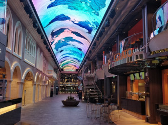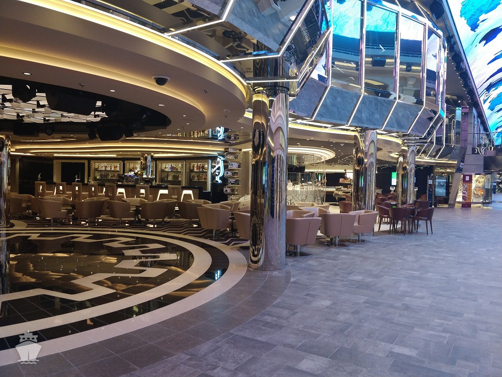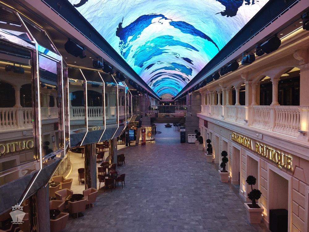 - promenáda s restauracemi, bary a duty-free obchody, zastřešená 480 m² LED "digitální oblohou" s vizuálními show