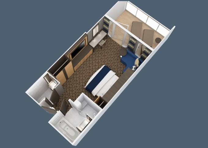 | 1U - Vnitřní kajuta s virtuálním balkonem 15 m². Obrazovka velkosti balkonových dverí s promítaným výhledem. 9/10. paluba. Max 2-4 osoby. | 34 912 Kč 17 456 Kč za osobu | ||
